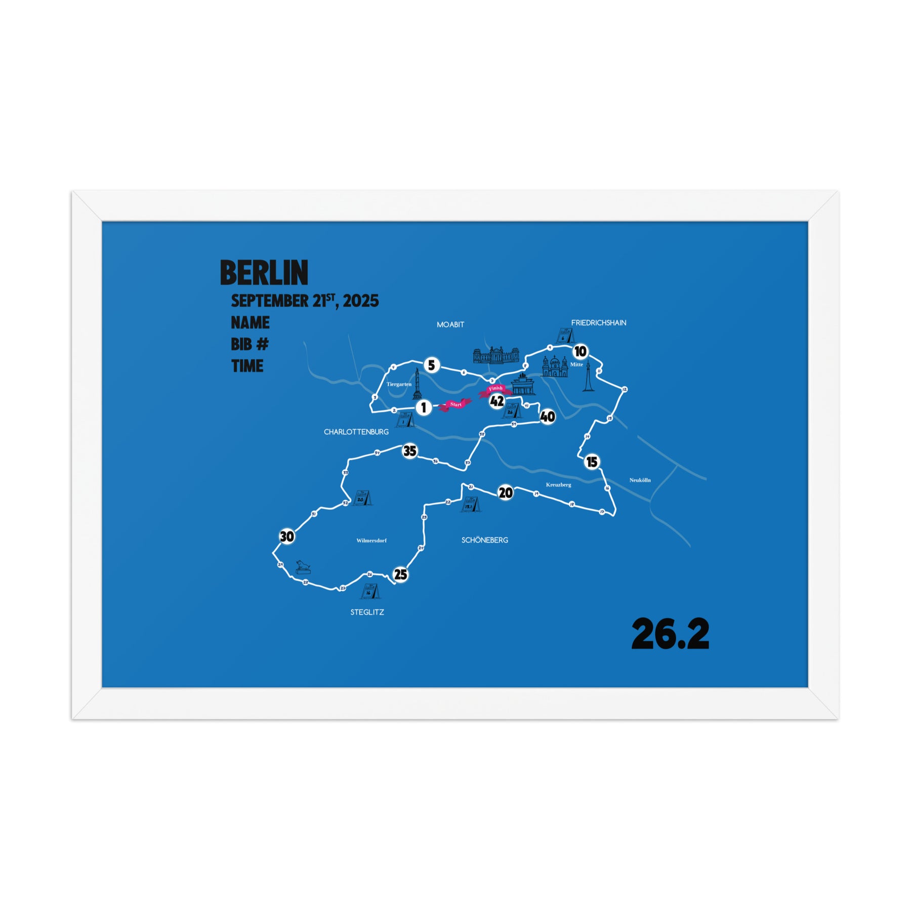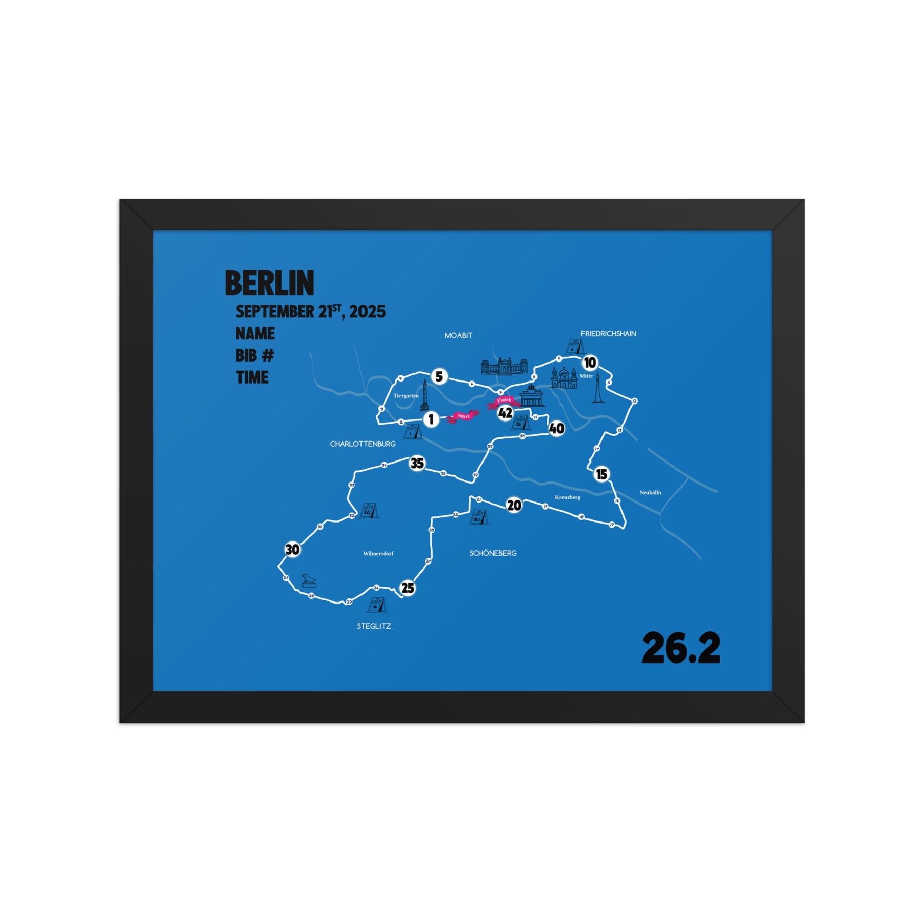 BERLIN MAP PRINT - PERSONALIZED MARATHON MAP WITH YEAR, FINISHER TIME, BIB NUMBER - MARATHON MAP