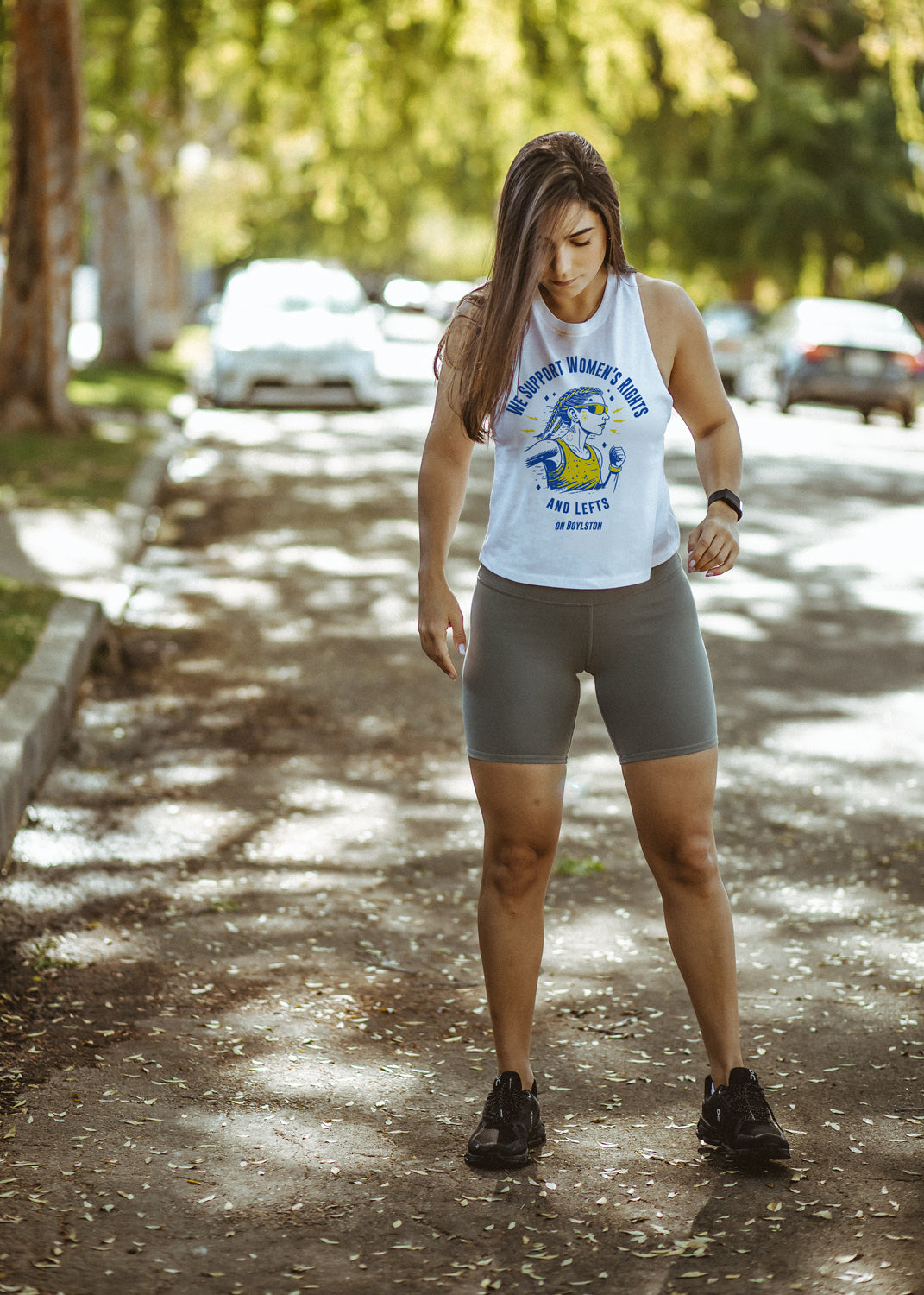 The perfect racerback crop top. With elongated armholes with raw edge details, this racerback tank is the perfect length crop (not too short, not too long). It will be your new favorite top.